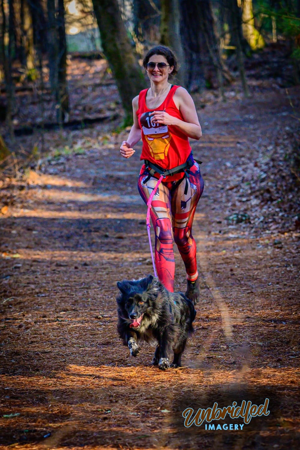My English Shepherd and I compete at an amateur level in canicross and bikejoring. We won two races this year! One was a two-day bikejoring novice class and the other was a canicross 10K. Any breed or mix can compete, intact or altered.
