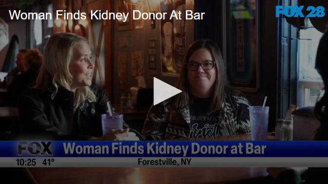 Woman Finds Kidney Donor At Bar by Fox 28 Spokane | @ | October 18, 2024 10:22 am TwitterFacebookGoogle+LinkedInPinterest After starting dialysis, a woman went to a tavern to pick up some take-out in a small town when she met her donor. Click the video for more details. Related PostsBaby Seal Wanders Into Bar Teddy Bear Missing After Reaching Stratosphere Radio Show Connects Woman With Cat