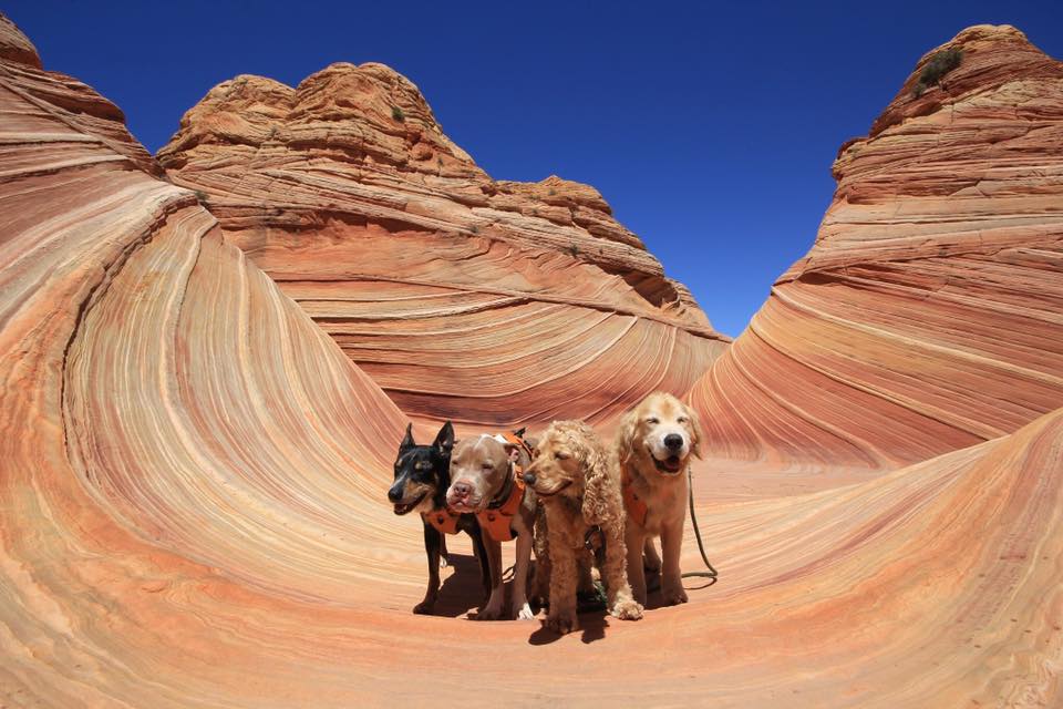Nathalie Mosbach Smith (California) RV. Kids. Dogs. Outdoor Adventurers. Our highlight this year? Taking four of our five pups on hiking adventures in Arizona and Utah. We got a permit to The Wave and took the four on an adventure of a lifetime. (There is a permit application process that will allow only 20 people a day to the area. The rock structure is unique.) We loved it. All of our dogs are dogs that came through owner surrender or rescue. Youngest is two and oldest is nine. Our 14-year-old Lab had to stay home. She has laryngeal paralysis and doesn’t do well in the heat.
